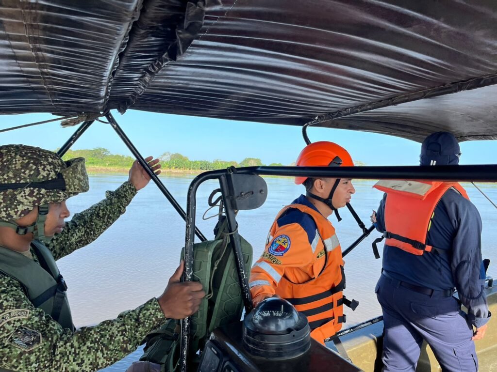 Unidades de la armada de Colombia intensifican labores de búsqueda y rescate sobre el río Magdalena.